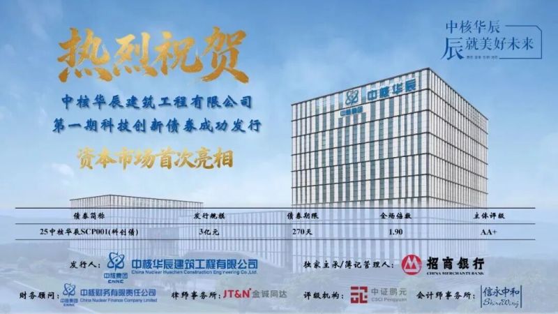 本次发行的科技创新债券规模3亿元,利率低于近期行业同评级企业平均水平,充分彰显了资本市场对中核华辰公司经营实力、信用水平与发展前景的高度认可。