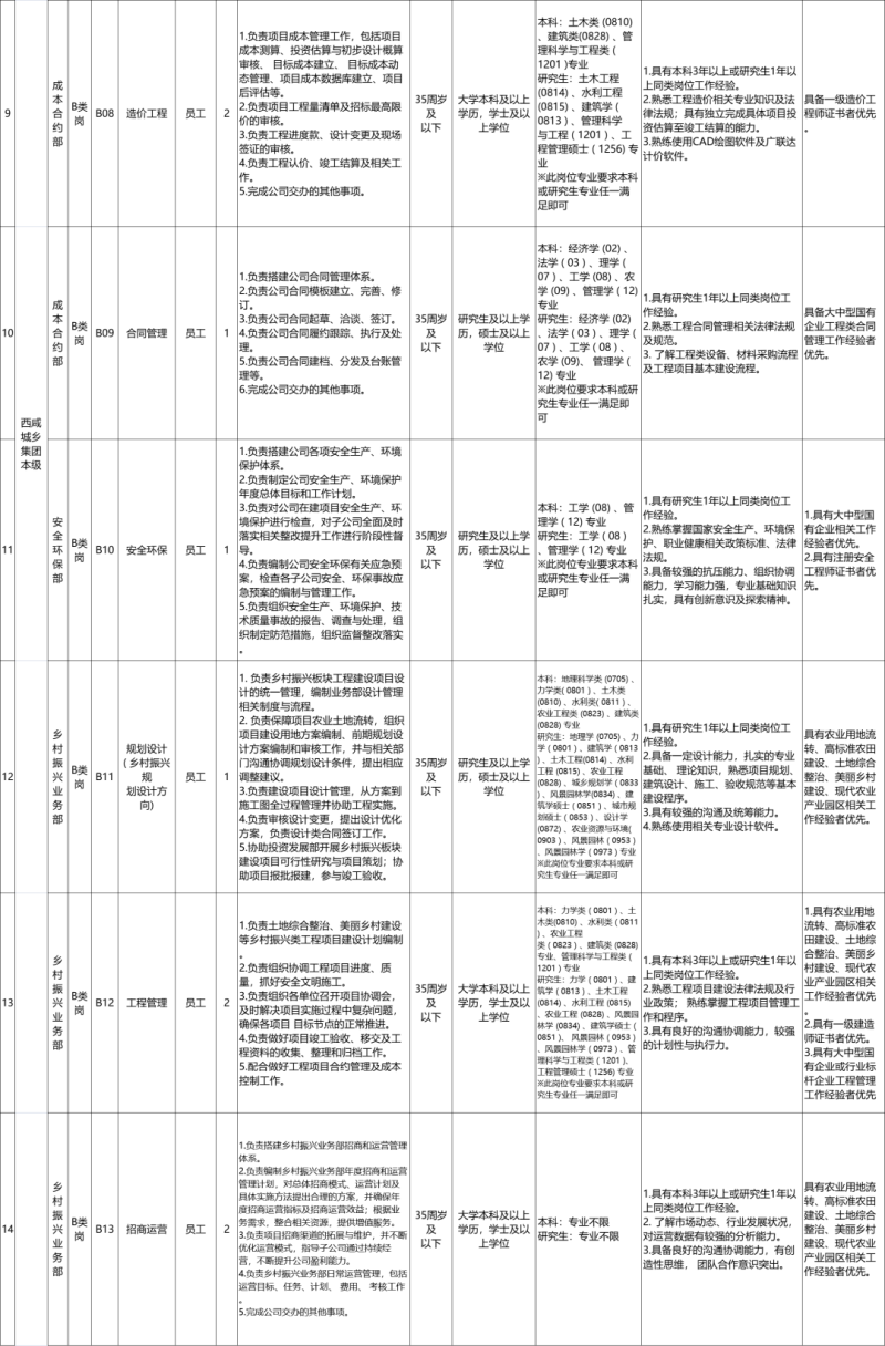 西咸城乡集团2023年社会公开招聘需求一览表