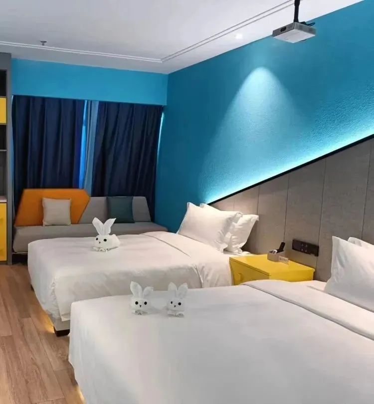 主要类型为主题双床房、主题大床房、亲子主题房、电竞主题房,采用了现在最为流行的客控系统、楼宇智能系统等高科技技术,包括自助入住、语音控房、机器人送物等智能模式,创新打造“安心住”和“无接触服务”。