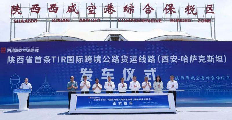 6月初,4辆标有TIR标示牌的卡车从陕西西咸空港综合保税区卡口出发,向目的地哈萨克斯坦驶去,车上装载价值约百万美元的机械设备及跨境电商产品,车队回程则载运中亚地区的酒水及生鲜食品,往返用时15天。这标志着陕西省首条TIR国际跨境公路货运线路正式开通,进一步完善了陕西到中亚乃至全球开放通道,填补了作为内陆城市的西安陆空多式联运短板。