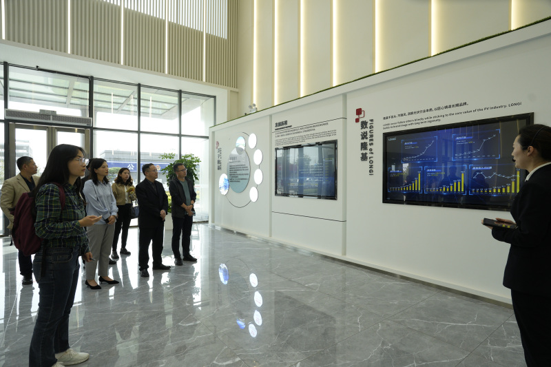 “零碳工厂”的建设发展历程、陈列的光伏电池展品、各种场景应用解决方案.......在隆基绿能中央研究院的展厅内,媒体团一行近距离感受到“光”的力量,触摸光伏新能源产业发展的脉搏。
