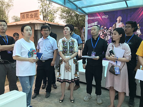 任炳群一行首先对产业孵化报告厅活动会场的布置情况进行了解,就会场布置的整体情况以及细节问题进行查看,并对其需要进一步完善的工作进行指导;随后在茯茶镇主会场查看场地布置以及设备搭建情况,与会各部门就具体工作开展进行了交流发言。