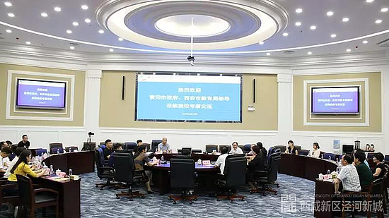 陈少敏一行先后参观了西咸新区黄冈泾河学校教学楼、学生公寓等办学设施以及学校的建设布局和校园文化氛围,任炳群介绍了学校从引进泾河新城到后期建设运营的整体情况。