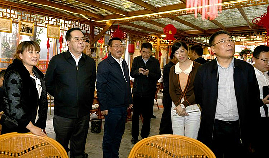 茯茶镇里小桥流水、灯笼高悬,戏楼、茶香、秦腔,游人如织呈现出一派繁盛红火景象。韩东太一行边走边看,详细听取西咸新区泾河新城创新城市发展战略定位和思路。