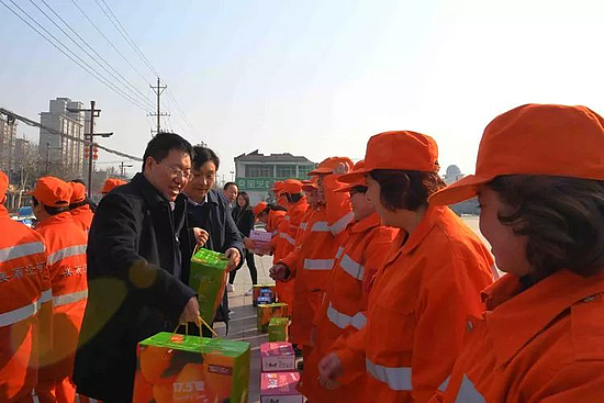 在泾干湖公园广场,张宏伟与环卫工人亲切交谈,详细询问一线环卫工人的生活状况和身体状况,对环卫工人辛勤劳动的成果和为城市建设所做出的贡献表示感谢,并通过他们向一直以来默默奉献、辛勤劳动的广大环卫工人及其家人,致以诚挚的节日问候。