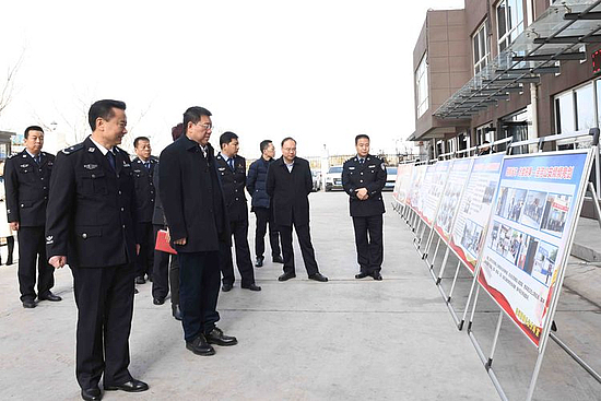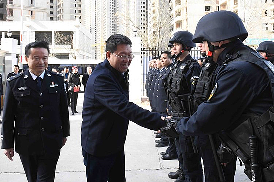 张宏伟一行实地查看了办案区、警械库及办公场所,慰问坚守一线的民警并向他们的家人致以节日的问候。张宏伟说:“明天就是除夕,首先向战斗在一线,为平安建设做出贡献的民警、辅警表示慰问,祝大家春节愉快”。