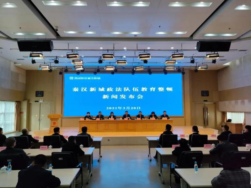 3月20日,西咸新区秦汉新城召开政法队伍教育整顿新闻发布会,旨在认真落实中央、省委、市委、新区党工委和新城党委关于政法队伍教育整顿工作要求,向社会正面宣传政法队伍教育整顿,强化外力推动,真开门、开大门,让群众监督,诚恳请群众评判,营造开门搞教育整顿的浓厚氛围。