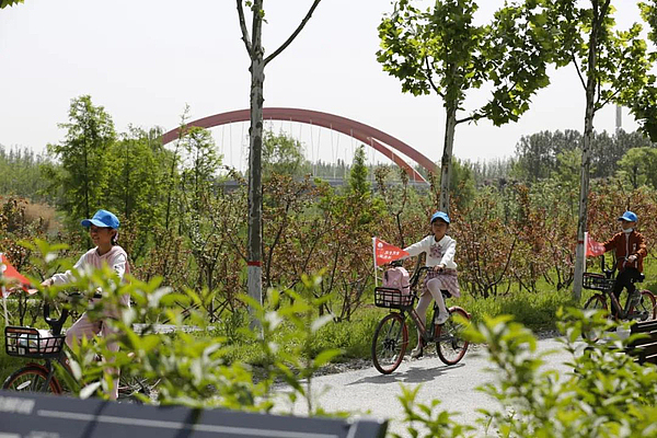 西咸新区赵纳女士说:“五一期间各景点人都很多,就想带孩子近郊游。海绵城市研学旅行,陪着孩子一起骑行、踏青、画画,还了解海绵城市知识,寓教于乐!”