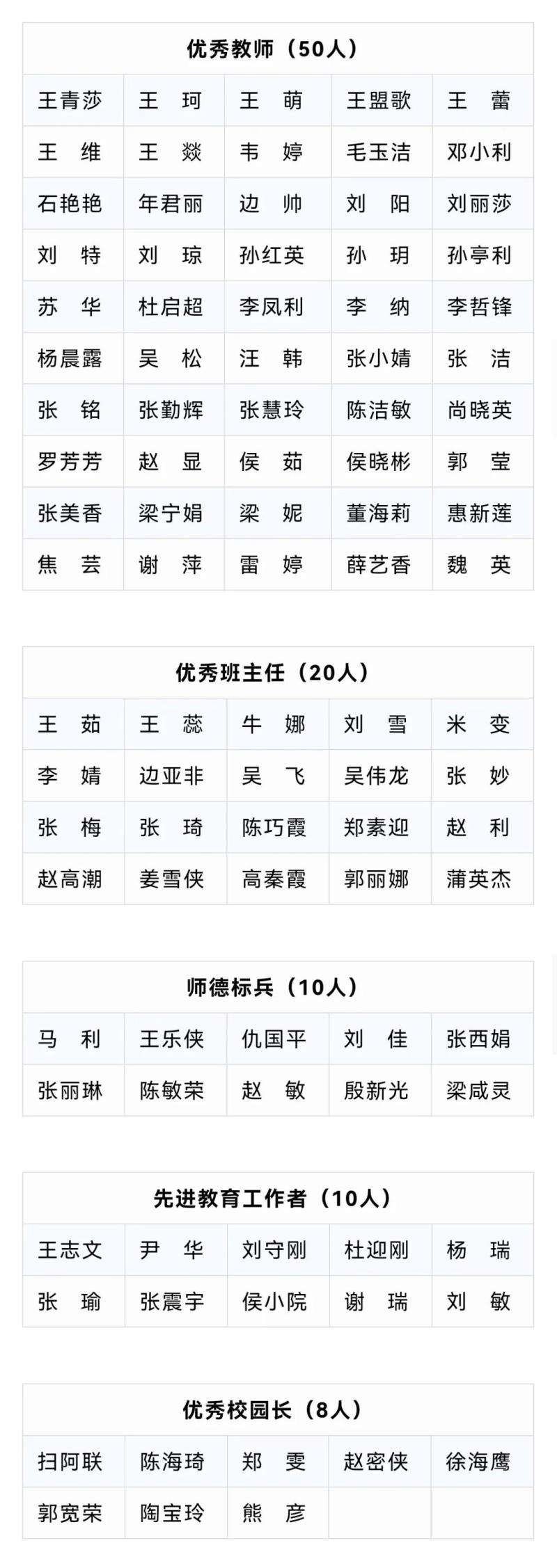 教育系统先进集体、先进个人名单