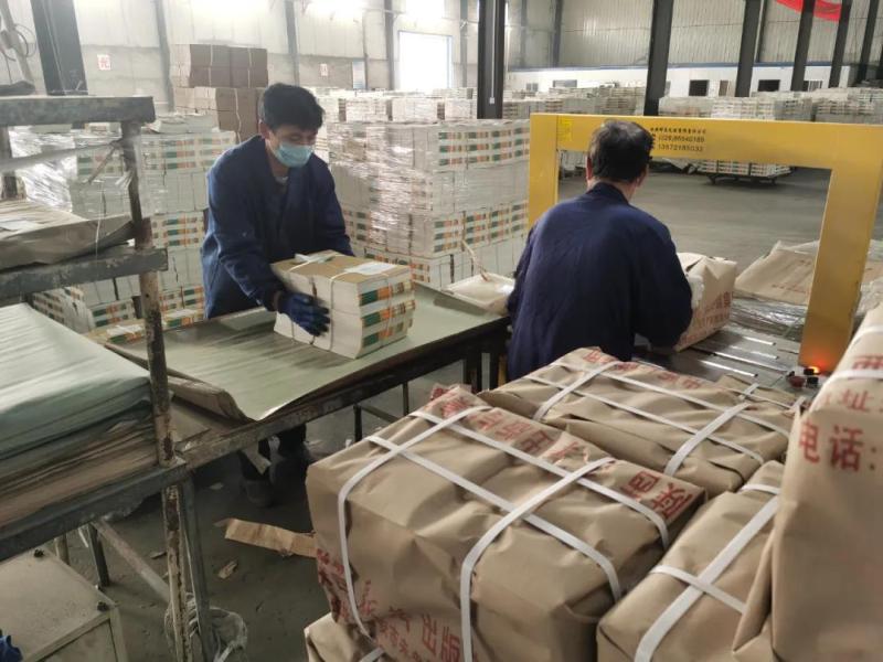 为保障春节过后,全省中小学学生在开学时顺利拿到教材,1月15日,陕西新华出版传媒集团组织员工陆续复工。1月19日上午,在位于沣东新城的陕西新华出版传媒集团物流公司区域内,工作人员正在紧锣密鼓地忙碌着包装、收发运往全省各地的教材课本。