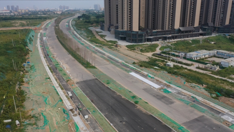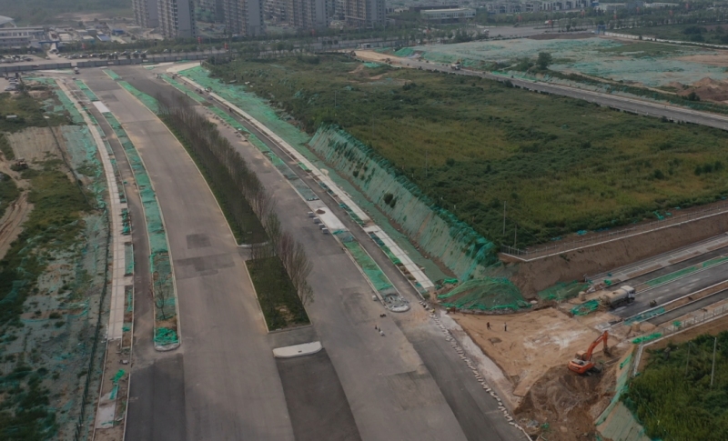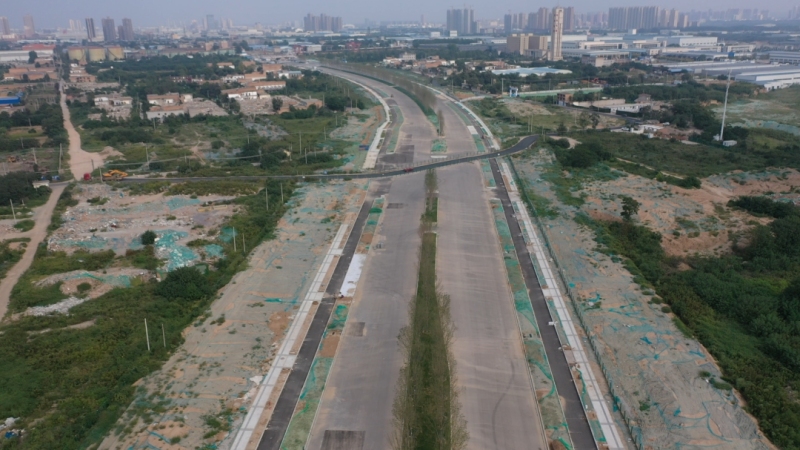 泾高城市通道(正阳大道—泾河新城东边界)市政道路工程位于西咸新区泾河新城东南部,泾河北岸,西起正阳大道,东至泾河东边界,是西咸新区联系西安北部主要交通干道,道路等级为城市主干路,道路正常段红线宽度60m,渠化段红线宽度65m、70m,双向8车道,全长2.42km,包含下穿既有咸铜铁路框架桥1座,于2021年1月28日开工建设。目前道路施工、管道工程(雨水、污水、给水和电力)等全部完成。