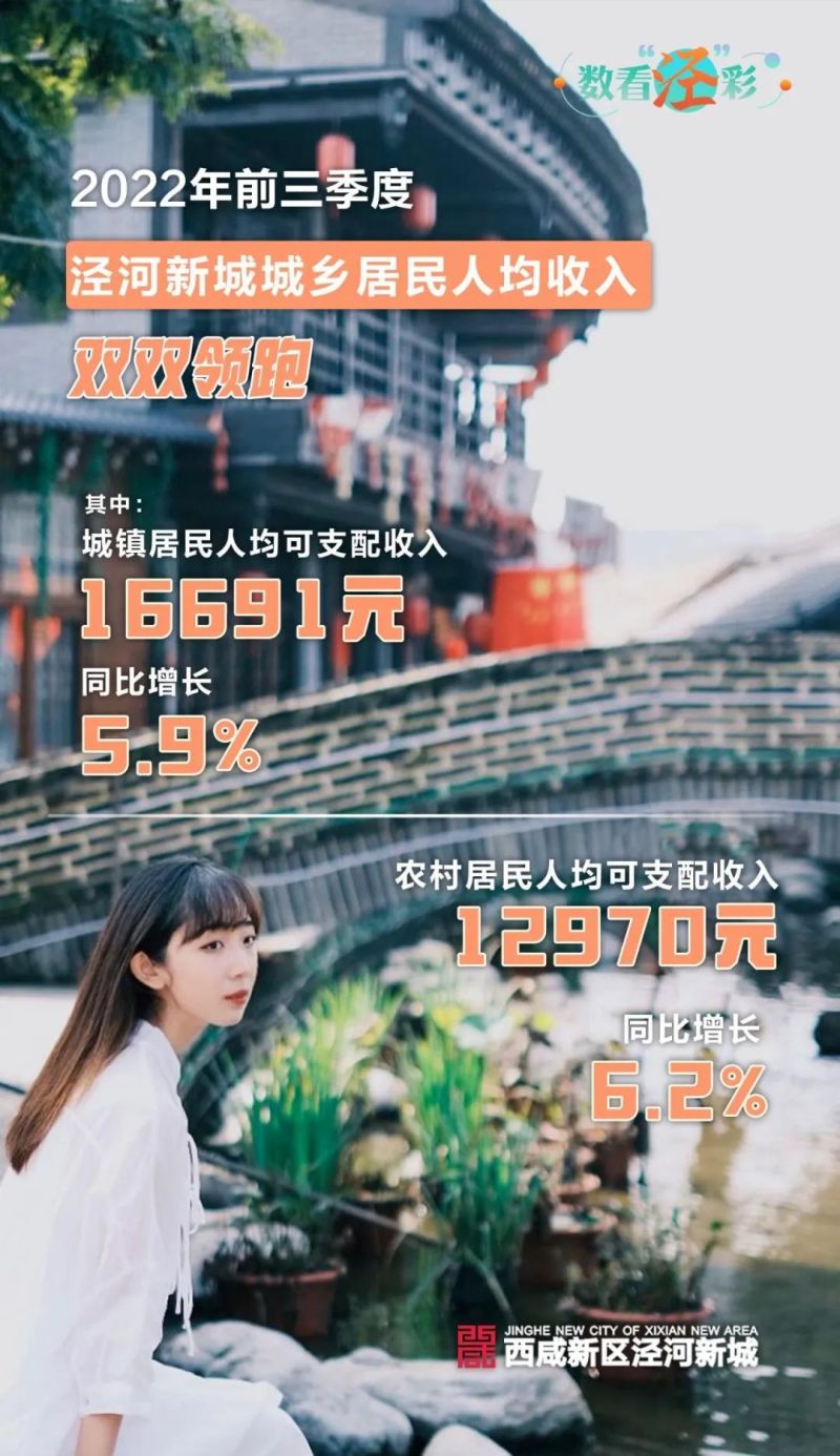 近日,2022年前三季度西咸新区各新城居民人均收入报告发布,泾河新城城乡居民收入实现稳步增长,双双领跑。