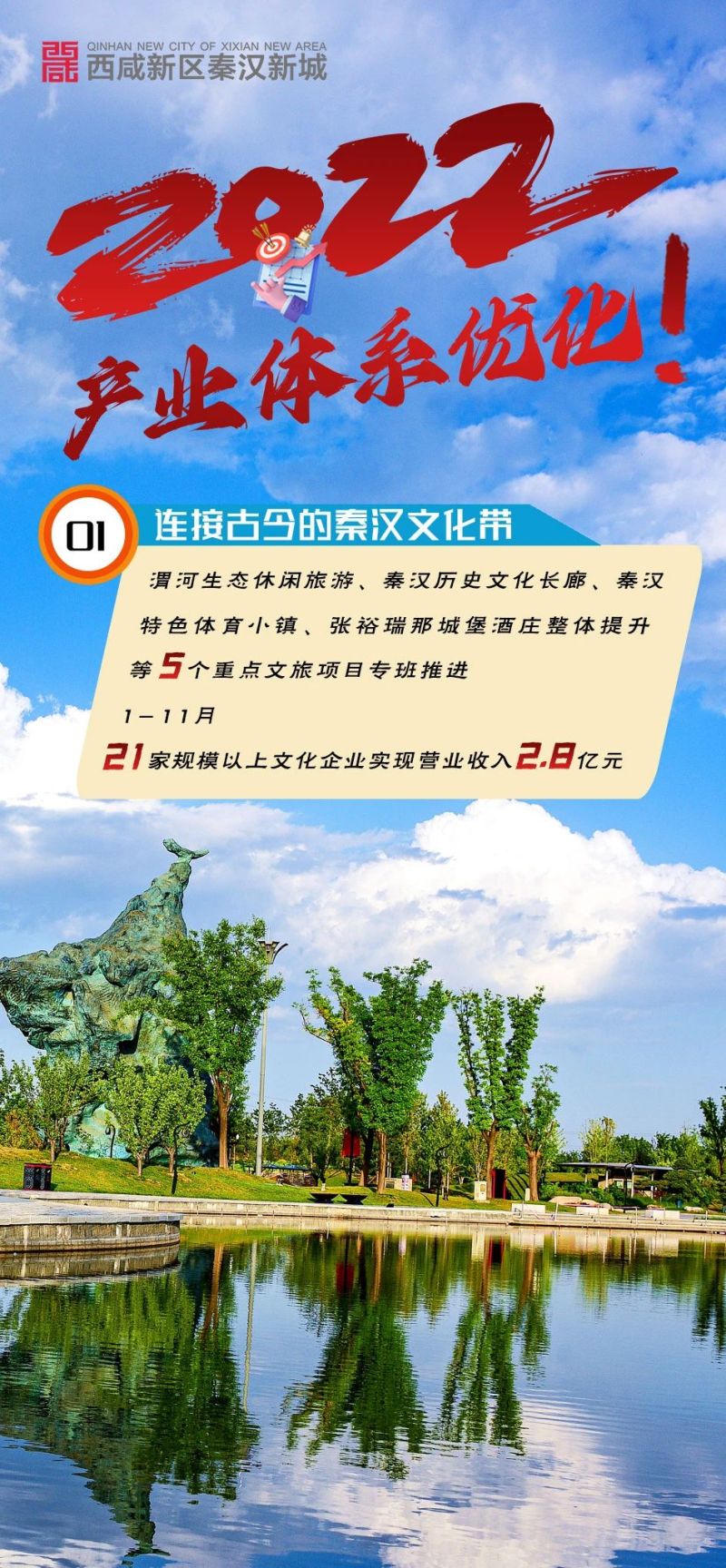 2022年,秦汉新城创新性提出“连接古今的秦汉文化带”“贯穿南北的战新产业带”“横跨东西的秦创原·渭河科创带”整体发展思路,勾画出未来发展的宏阔蓝图,产业体系进一步优化。