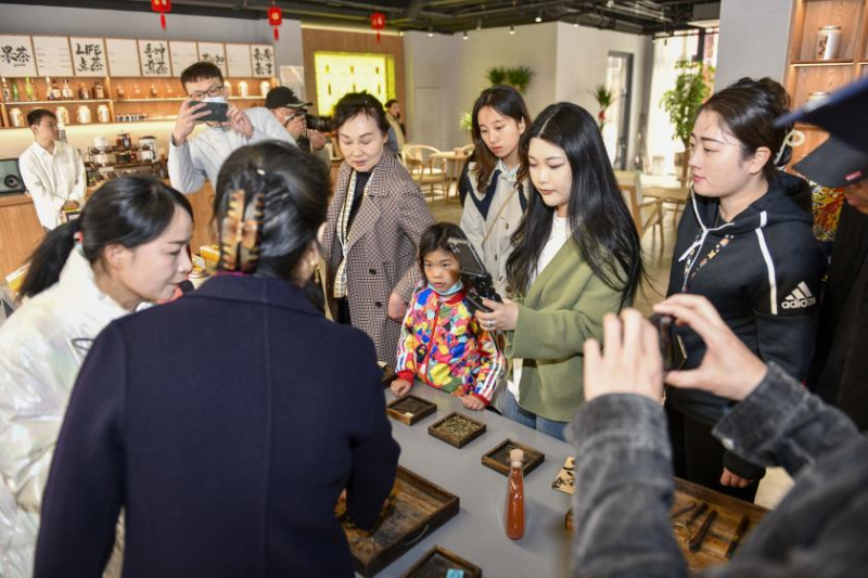 “设计的文创产品有收藏价值,还挺有意思的。”“这杯茶闻起来有淡淡的樱花香,入口也很醇厚,好喝。”走进秦创原·茯茶文化创新中心,茯茶醇厚甘甜的香味瞬间被嗅觉捕获。一人捧着一杯茯茶,一边倾听“神农尝百草”的神奇故事,一边品尝着茯茶的醇厚悠长,听工作人员讲解中国茶文化及茯茶产业的发展史,慢品属于这座城的“茶”时光。