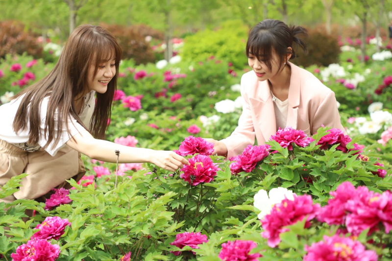 “今年的牡丹开得格外好,园内种植的绿牡丹、赵粉、洛阳红、白雪塔、香玉等品种基本都开了,总共有11万株、300亩。”红林牡丹园工作人员介绍道,“此外,我们还特地设置了巨型稻草人王国以及萌宠乐园,让广大游客在欣赏花海的同时享受不一样的田园野趣。”