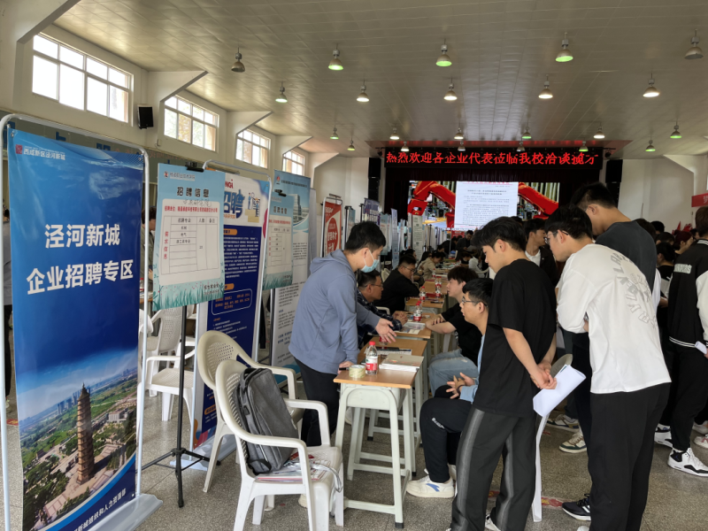 此外,招聘会现场还设置了泾河新城人才服务专区,工作人员围绕新城产业发展规划、紧缺人才需求、人才就业政策等方面进行详细解读,吸引了大批学生咨询。