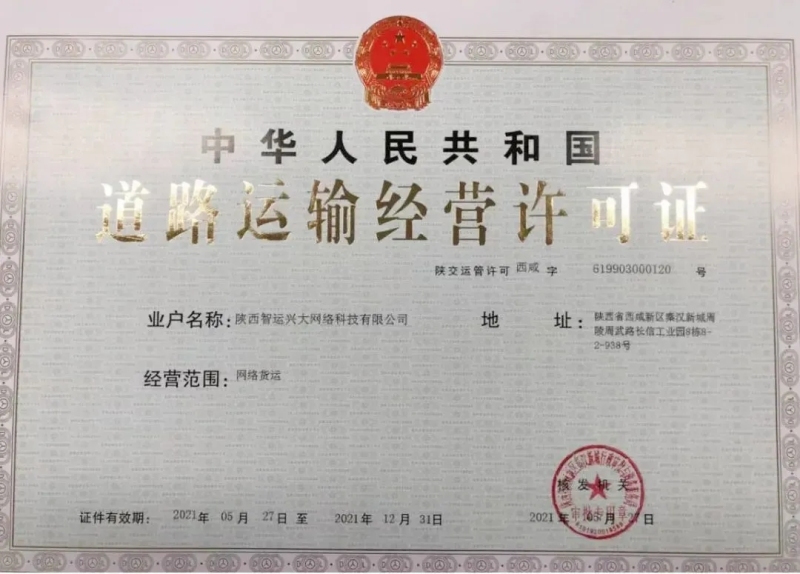 5月31日上午,陕西智运兴大网络科技有限公司办事员领取了由西咸新区秦汉新城发出的“道路运输经营许可证”。这是西咸新区首张“网络货运”道路运输经营许可证,标志着区域传统物流行业开始迈出向“互联网+高效物流”转型的步伐。