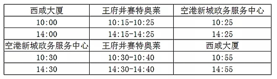 该线路由西咸大厦出发,途经沣泾大道、咸宋路、迎宾大道至空港新城政务服务中心,全程约17km,设置西咸大厦、王府井赛特奥莱、空港新城政务服务中心等3处停靠站点,配备10米级纯电动清洁能源客车1台。