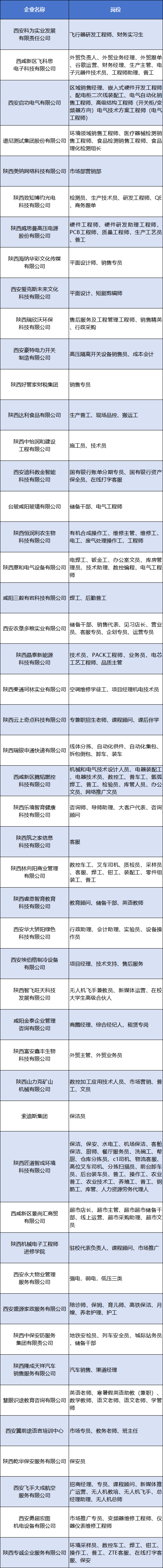 “西咸新区金秋招聘季”沣西新城专场招聘会岗位及企业名单