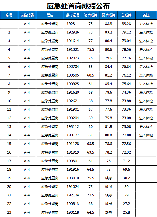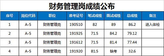 西咸新区管委会公开招聘派遣制员工资格复审、笔试、体能测试及面试工作已于2019年1月19日全部完成,现将面试成绩及进入体检人员名单公告如下: